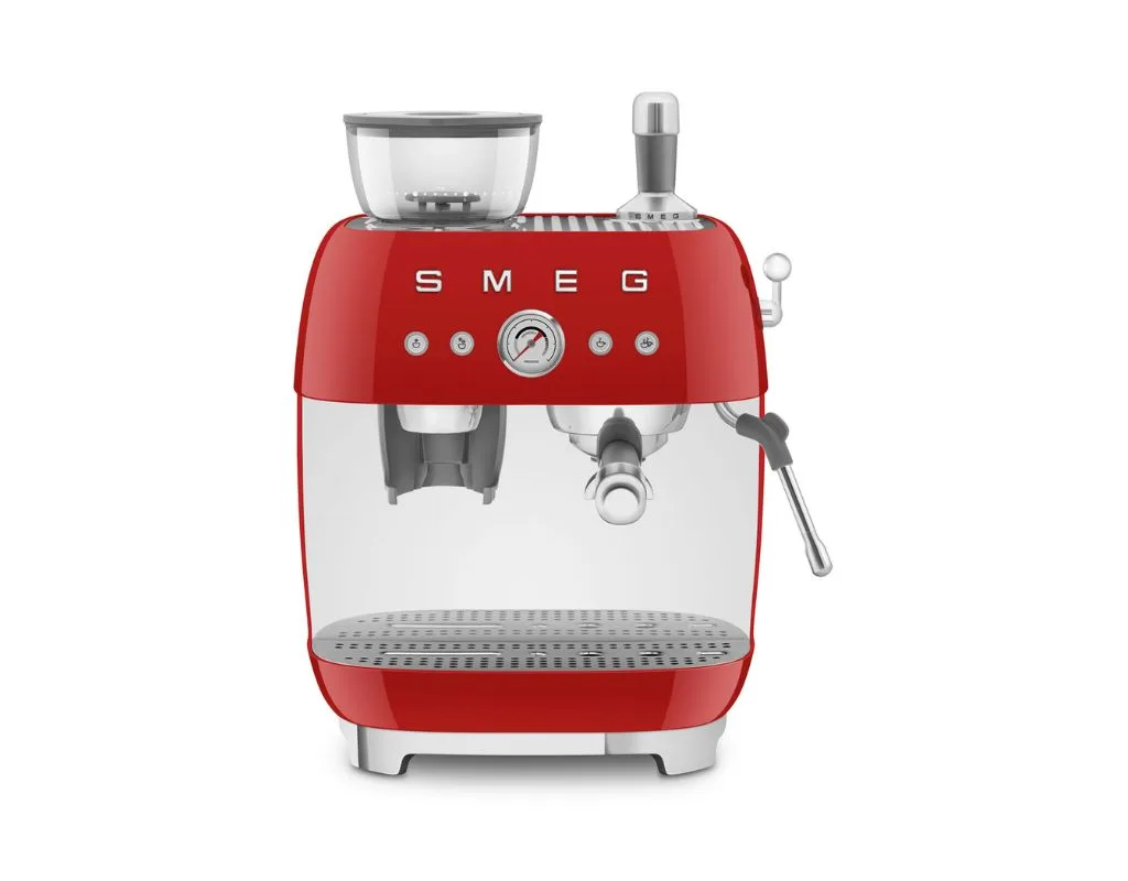 Obudowa EGF03RDEU to hołd oddany ponadczasowemu wzornictwu retro. Solidne, metalowe wykończenie w czerwonym kolorze charakterystycznych dla serii 50’s Style przyciąga wzrok i nadaje kuchni niepowtarzalny charakter. To sprzęt, który nie tylko doskonale parzy kawę, ale staje się ozdobą wnętrza – idealnym połączeniem solidności, trwałości i stylu. Design SMEG to nie tylko ładna obudowa: to filozofia, w której każdy detal został dopracowany w najmniejszym stopniu. Od ergonomicznych uchwytów, przez krystaliczny panel przycisków, aż po subtelne akcenty chromowanych elementów – każdy element odzwierciedla włoską pasję do detalu.