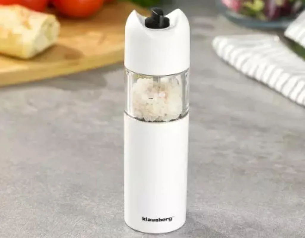 Elektryczny młynek grawitacyjny do soli i pieprzu Klausberg KB-7437 biały | 18 cm