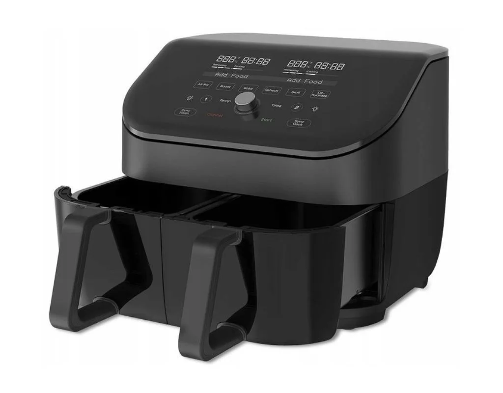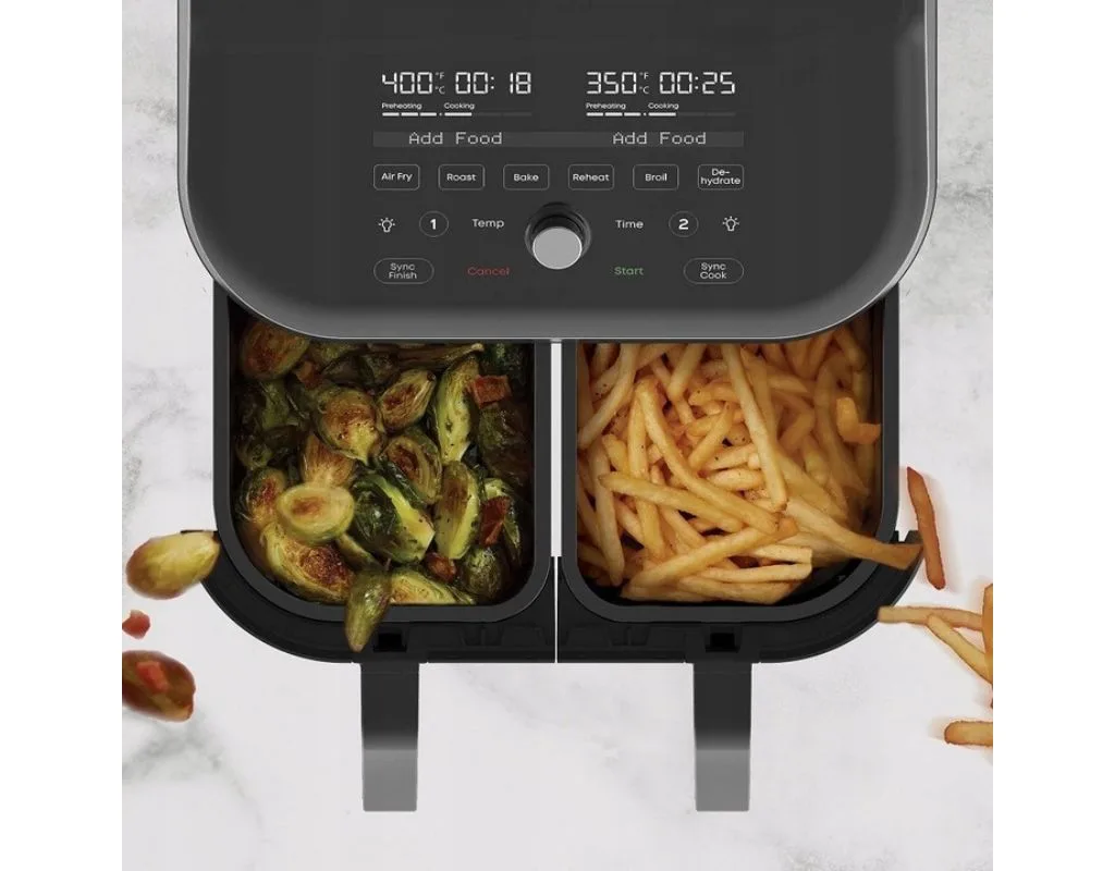 Zamiast wielu urządzeń – jedno, które potrafi wszystko. Instant Vortex Plus Dual Air Fryer oferuje aż 8 funkcji w 1, w tym smażenie powietrzem, pieczenie, grillowanie, suszenie i podgrzewanie. Programy Sync Cook i Sync Finish automatycznie dopasowują ustawienia i czas gotowania, dzięki czemu oba kosze kończą pracę w tym samym momencie – bez zamieszania, bez zgadywania. To więcej niż zwykła frytkownica podwójna – to centrum kulinarnej kreatywności, które pozwala Ci przygotować pełny obiad szybciej i zdrowiej.