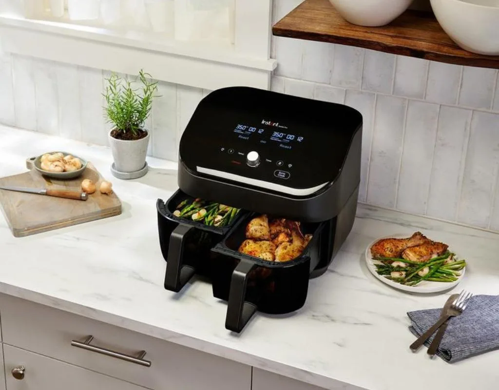 Instant™ to marka nr 1 w Ameryce, znana z niezawodnych i innowacyjnych rozwiązań kuchennych. Ich frytkownica beztłuszczowa podwójna to odpowiedź na potrzeby współczesnych użytkowników: szybkie, zdrowe gotowanie w wygodnej formie. Dzięki możliwości przygotowania aż 8 porcji jednocześnie, urządzenie sprawdzi się zarówno na co dzień, jak i podczas większych spotkań. Wbudowane funkcje bezpieczeństwa, jak automatyczne wyłączanie czy ochrona przed przegrzaniem™, to dodatkowy atut, który sprawia, że Airfryer Instant Vortex Plus Dual to zakup na lata. Zaufaj technologii, która zdobyła zaufanie milionów – i odkryj nową jakość gotowania już dziś.