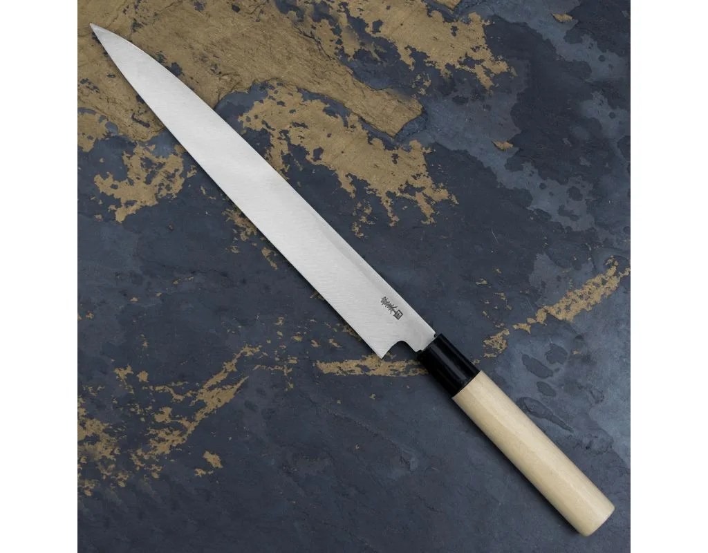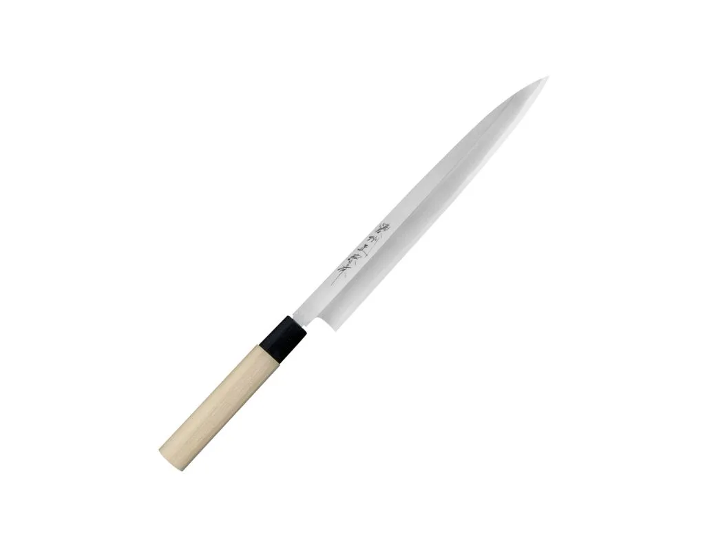 Nóż do sushi Yanagiba Satake Cutlery Mfg Shirogami#2 27 cm to propozycja dla osób, które chcą przenieść do swojej kuchni jakość cięcia znaną z japońskich restauracji. Ten „nóź japoński” został stworzony z myślą o wyjątkowo precyzyjnym krojeniu świeżych filetów rybnych na cienkie, równe plastry, dzięki czemu idealnie sprawdza się przy przygotowywaniu sushi, sashimi, rybnego carpaccio oraz innych delikatnych składników. Jeśli szukasz narzędzia, które pozwoli Ci ciąć płynnie, czysto i bez szarpania struktury produktu, ten „nóż kuchenny” spełni oczekiwania nawet wymagającego użytkownika. Długie, wąskie ostrze w stylu yanagiba zostało zaprojektowane tak, aby jeden pewny ruch wystarczył do uzyskania estetycznych porcji, które zachwycają wyglądem i podnoszą komfort pracy w kuchni.