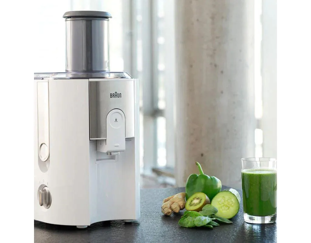 Sokowirówka MultiQuick 5 marki Braun to niezwykłe urządzenie, które ożywi Twoje poranki za pomocą bomb witaminowych. Teraz możesz cieszyć się pysznym i zdrowym sokiem w prosty i ekspresowy sposób. Dzięki wyjątkowo szerokiej i wygodnej tubie nie musisz kroić owoców na małe kawałki – wystarczy wrzucić je do sokowirówki, a ta zrobi resztę pracy w kilka sekund.
