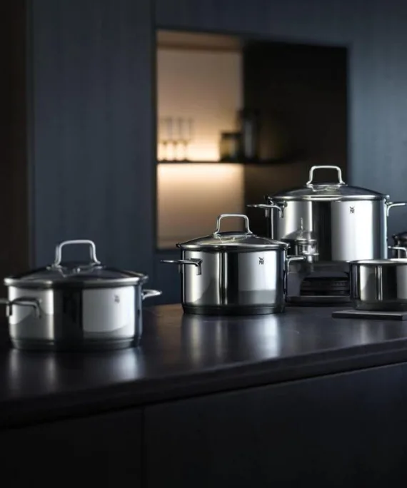 Garnki premium marki WMF cechuje design, najwyższa jakość i funkcjonalność. Są one tworzone z pasją i troską o każdy detal. Niemiecka jakość gwarantuje, że garnki posłużą ci przez lata. Jeżeli chcesz uczynić swoją kuchnię podobną do tej, w której gotują prawdziwi mistrzowie, używaj równie znakomitych garnków WMF.