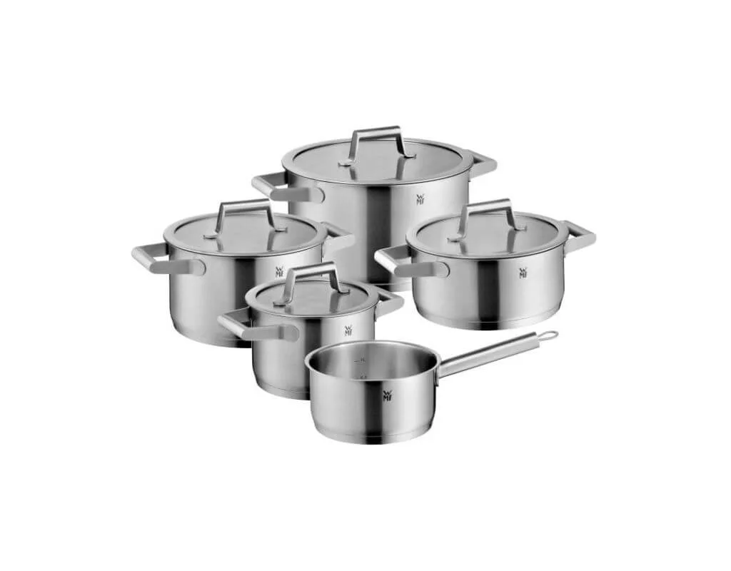 Prezentowany 9-elementowy zestaw garnków WMF Comfort Line zawiera rondel oraz cztery garnki ze szklanymi pokrywkami o różnych średnicach i stanowić będzie idealnie uzupełnienie naczyń, dając możliwość przygotowania mniejszych lub większych ilości dań. Matowe wykończenie naczyń z kolekcji Comfort Line w połączeniu ze szkłem wykorzystanym w pokrywkach daje niezwykle elegancki efekt, sprawiając że naczynia te doskonale wpasują się zarówno w tradycyjne wystroje kuchni, jak i te bardziej nowoczesne.